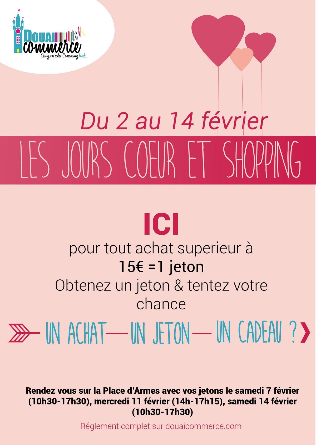 Du 2 au 14 février, récoltez des jetons chez vos commerçants adhérents préférés ! Un achat supérieur à 15€ vous donnera droit à un jeton.